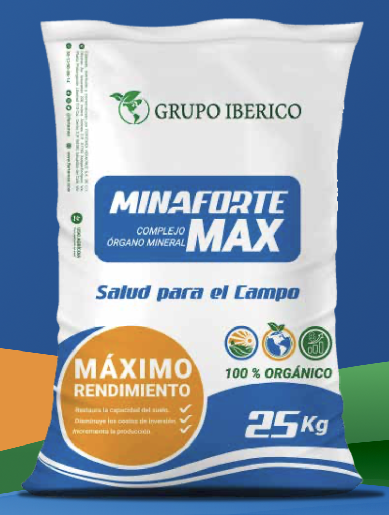Órgano-mineral que mejora estructura y fertilidad del suelo, incrementa retención de agua y asimilación de nutrientes.